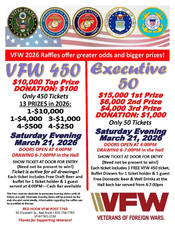 Every ticket purchased so far will be honored at the March 21, 2026 drawing. After thoughtful discussion, the Post unanimously agreed that extending the fundraiser — rather than issuing refunds — is the most responsible path to ensure we can deliver on our promises and continue supporting those who rely on us.